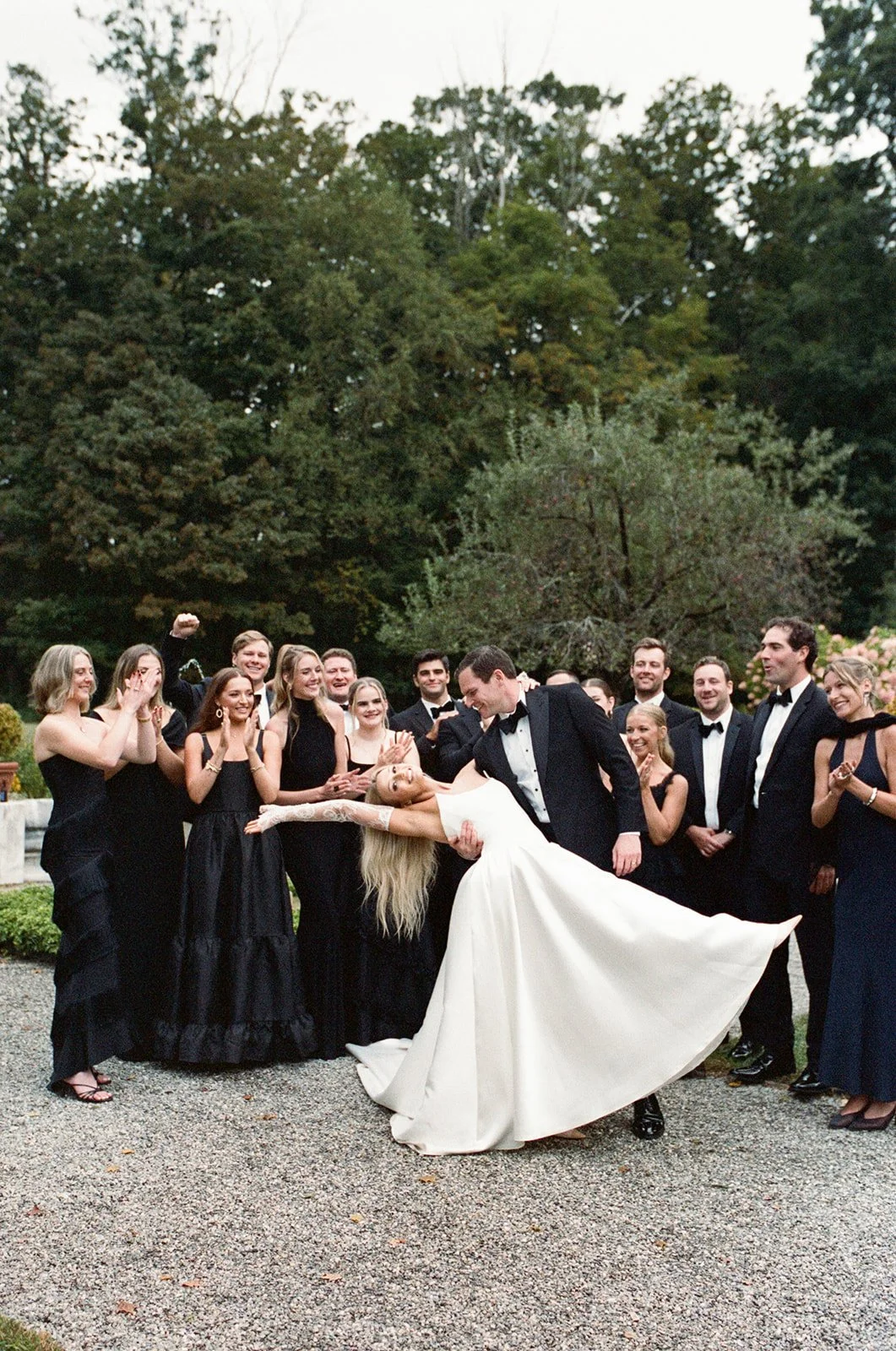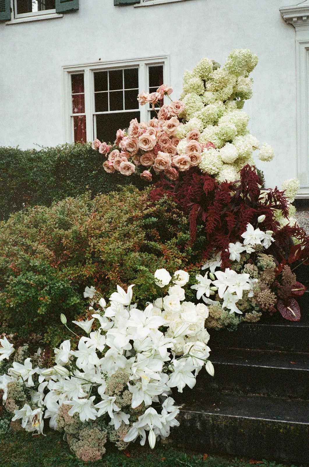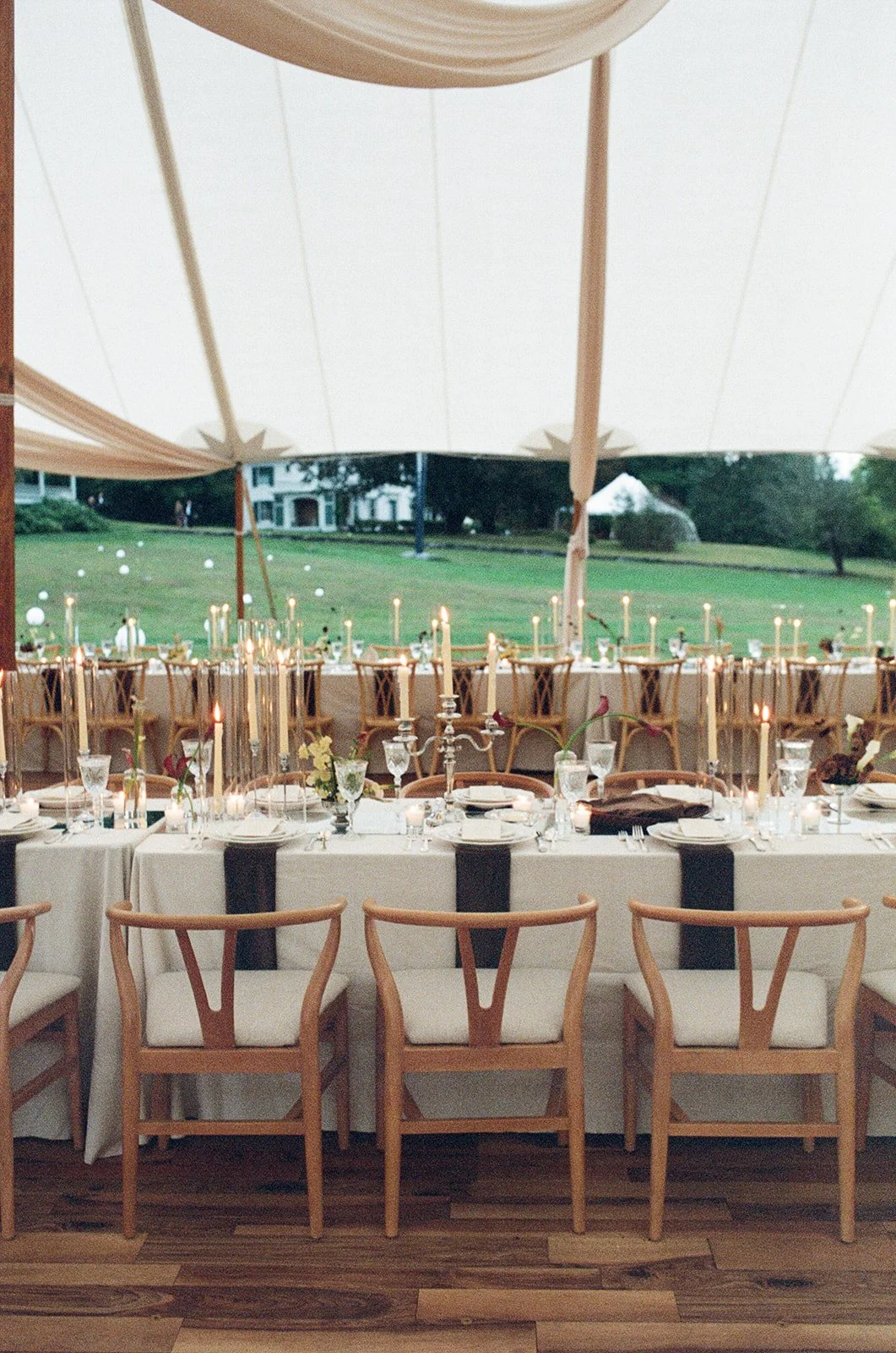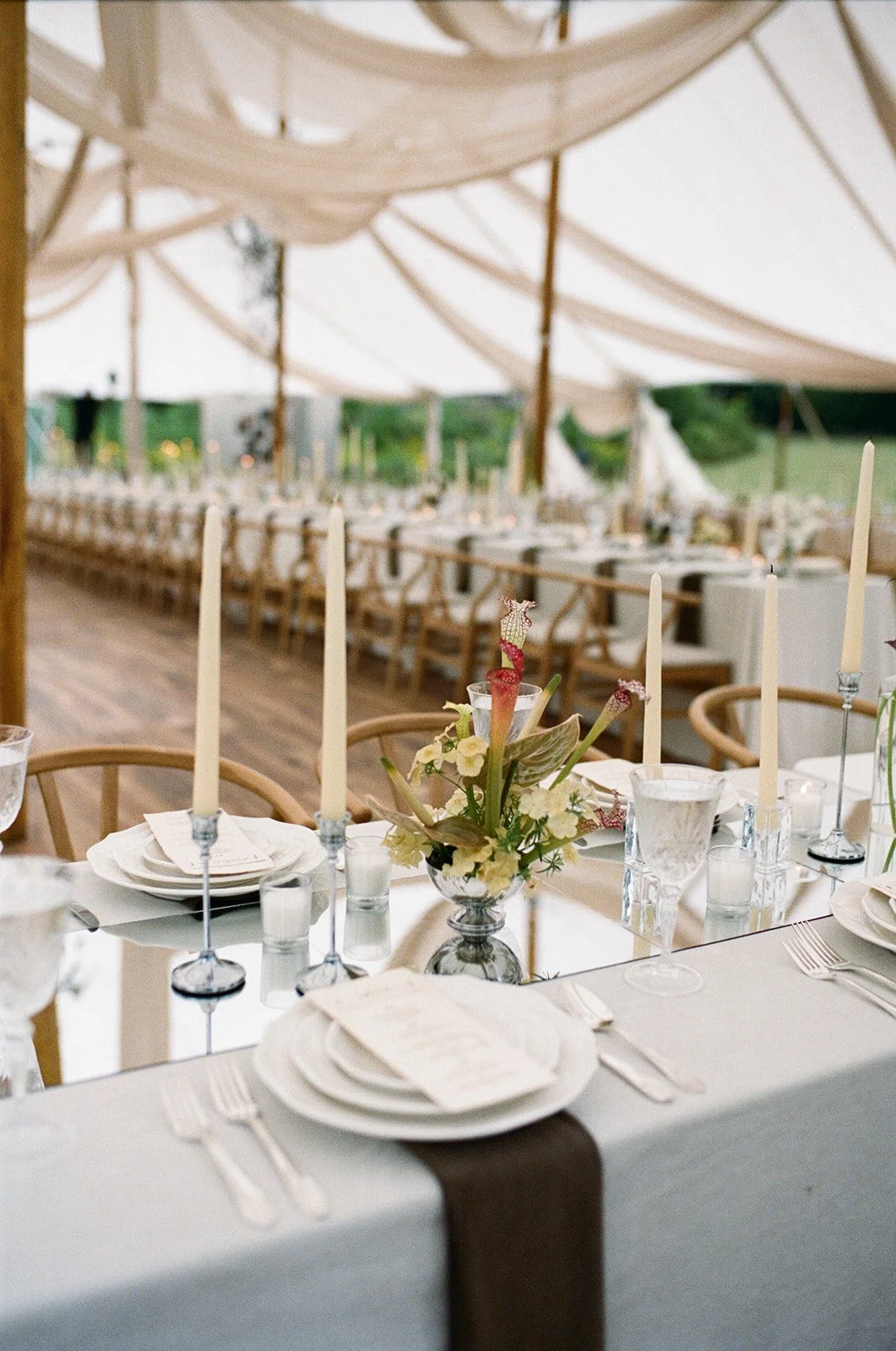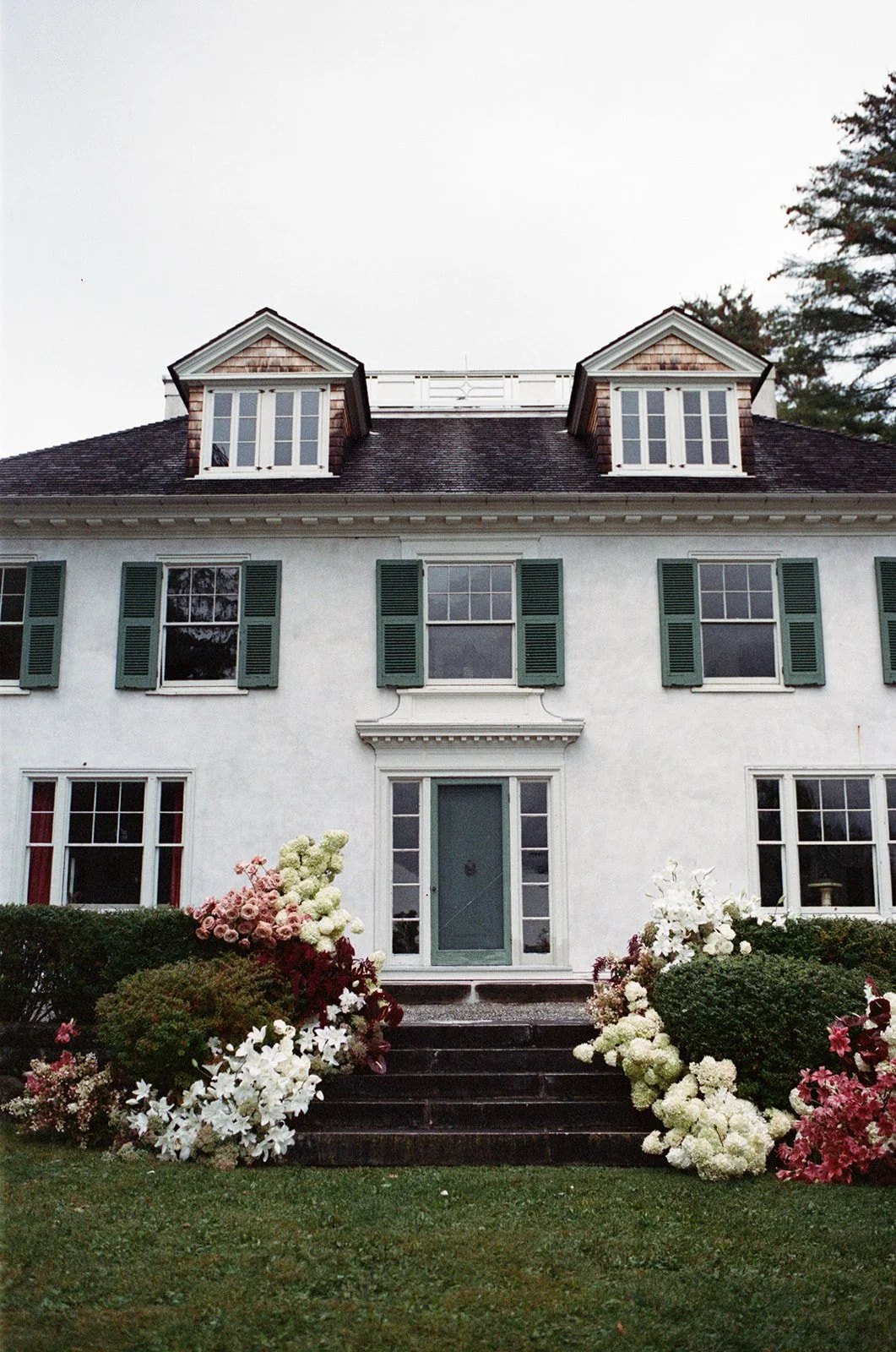 Set in the heart of the Berkshires, Chesterwood offered the perfect balance of timeless artistry + natural serenity. Once the summer estate + studio of sculptor Daniel Chester French, the property carries a quiet reverence for craftsmanship + design, an ideal backdrop for Ana + Will’s art-inspired celebration. The historic architecture, paired with open-air gardens and sweeping views, allowed light + texture to move freely through each vignette. We leaned into this organic rhythm, layering creamy champagne, taupe, + soft white tones with rich camel and sleek black accents. Hints of deep blackberry + ballet pink added depth + charm, creating an atmosphere that felt both refined + alive—a living gallery of love, movement, + meaning.