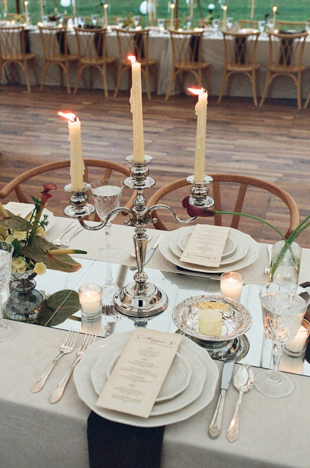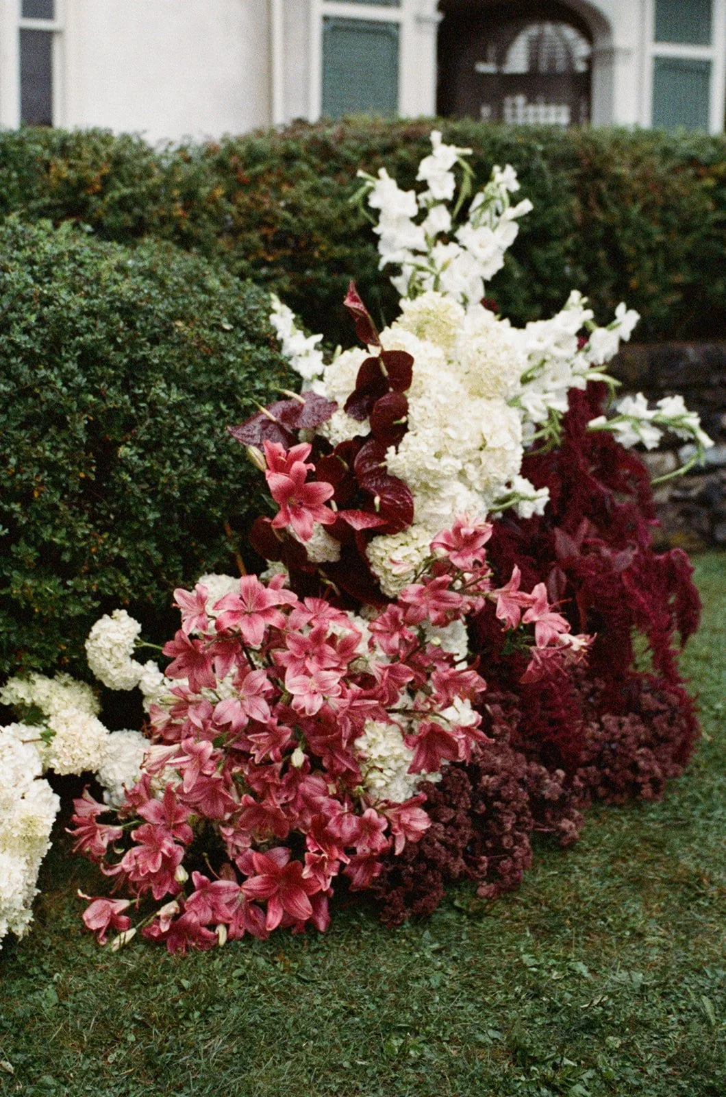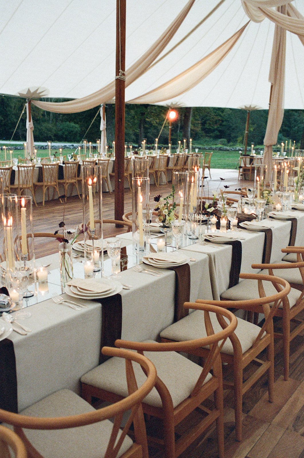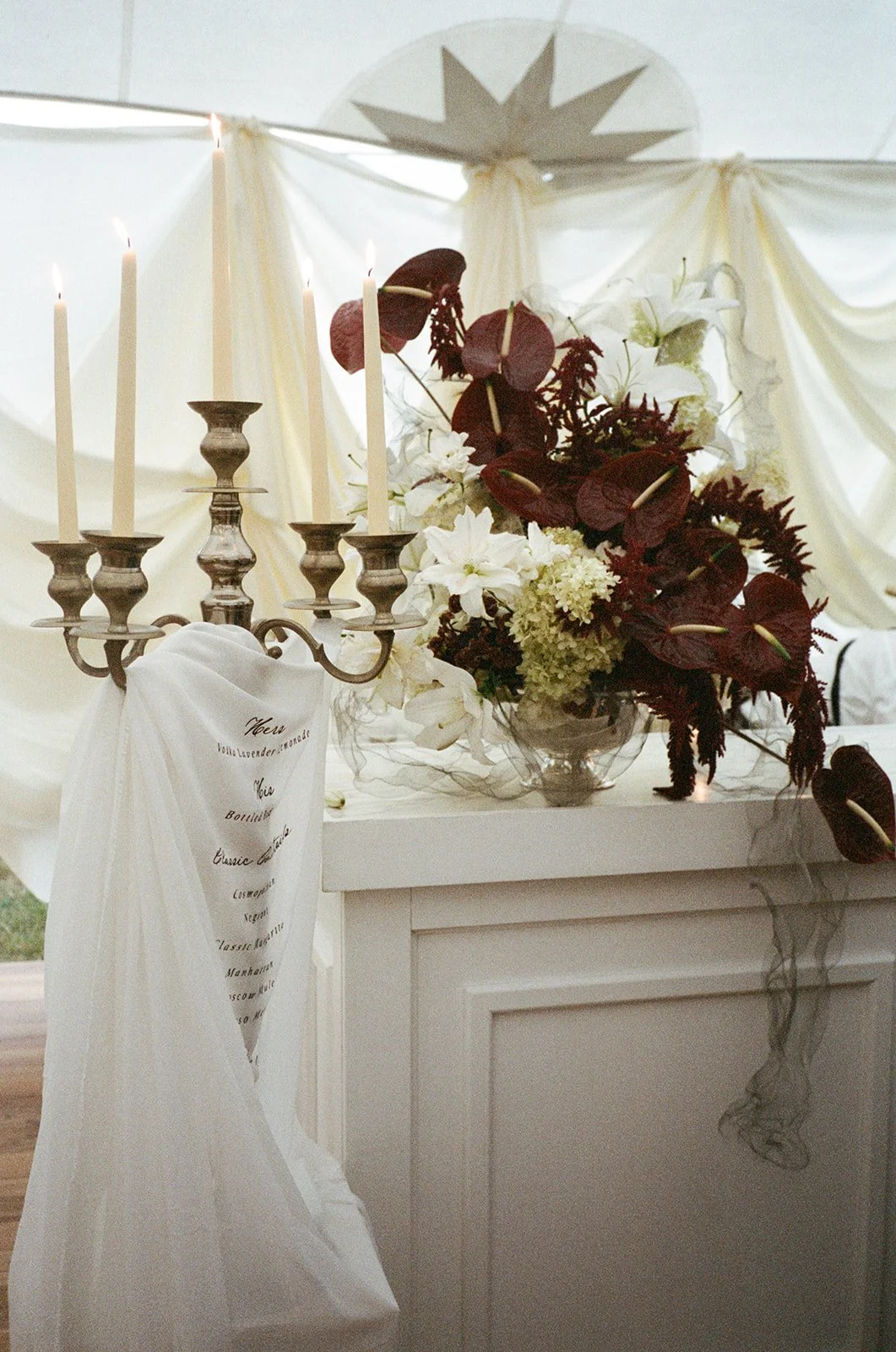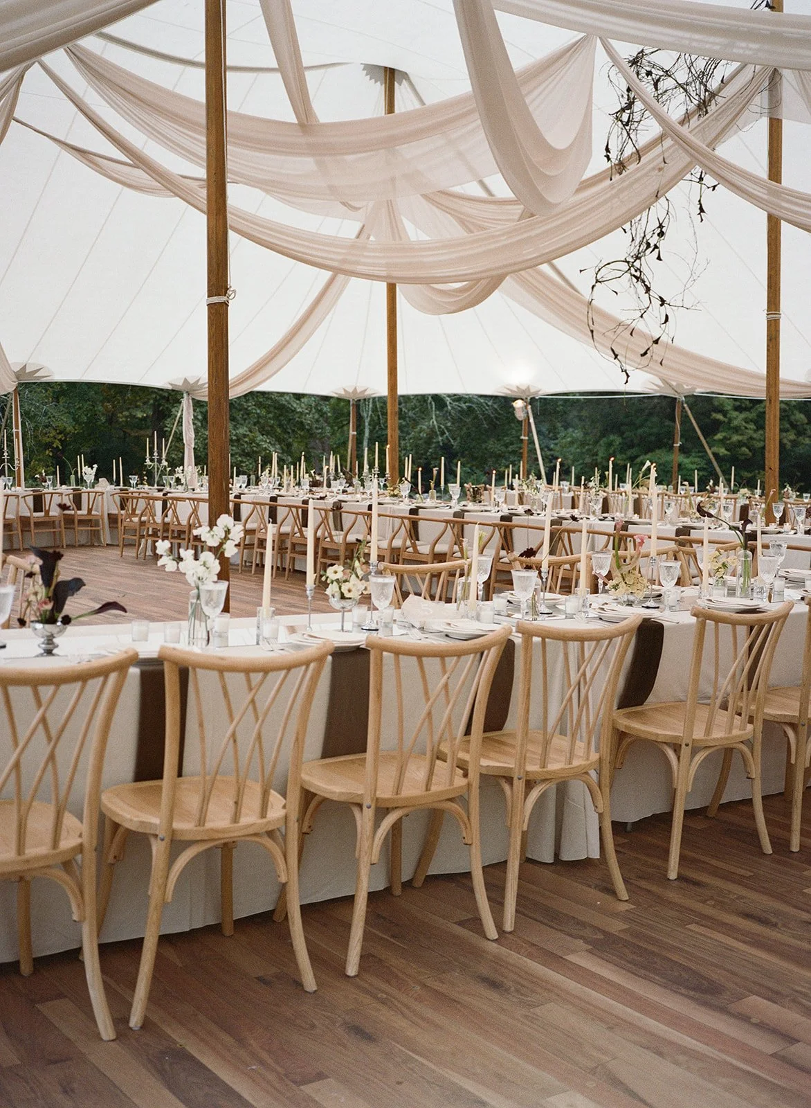 Set in the heart of the Berkshires, Chesterwood offered the perfect balance of timeless artistry + natural serenity. Once the summer estate + studio of sculptor Daniel Chester French, the property carries a quiet reverence for craftsmanship + design, an ideal backdrop for Ana + Will’s art-inspired celebration. The historic architecture, paired with open-air gardens and sweeping views, allowed light + texture to move freely through each vignette. We leaned into this organic rhythm, layering creamy champagne, taupe, + soft white tones with rich camel and sleek black accents. Hints of deep blackberry + ballet pink added depth + charm, creating an atmosphere that felt both refined + alive—a living gallery of love, movement, + meaning.
