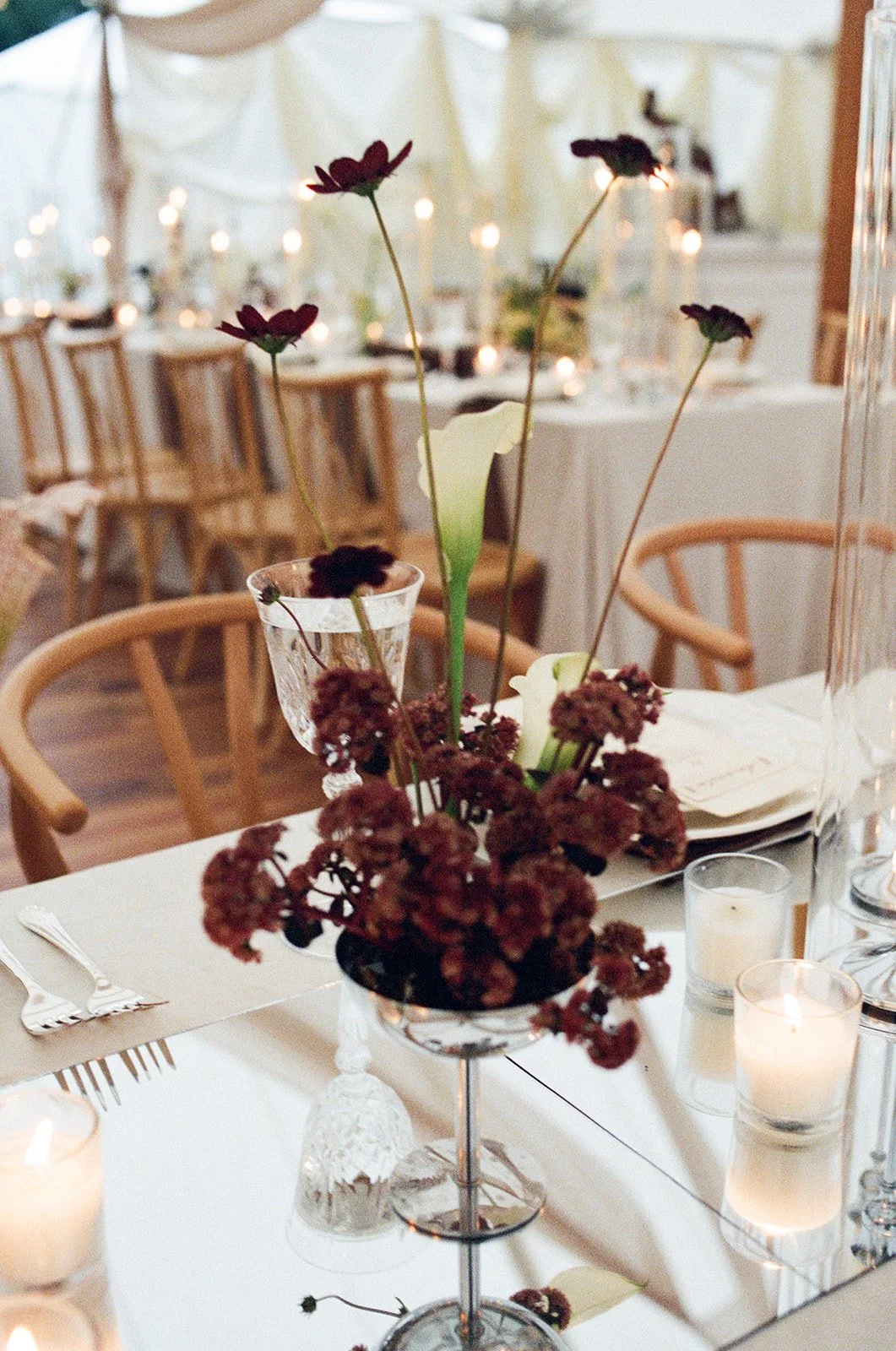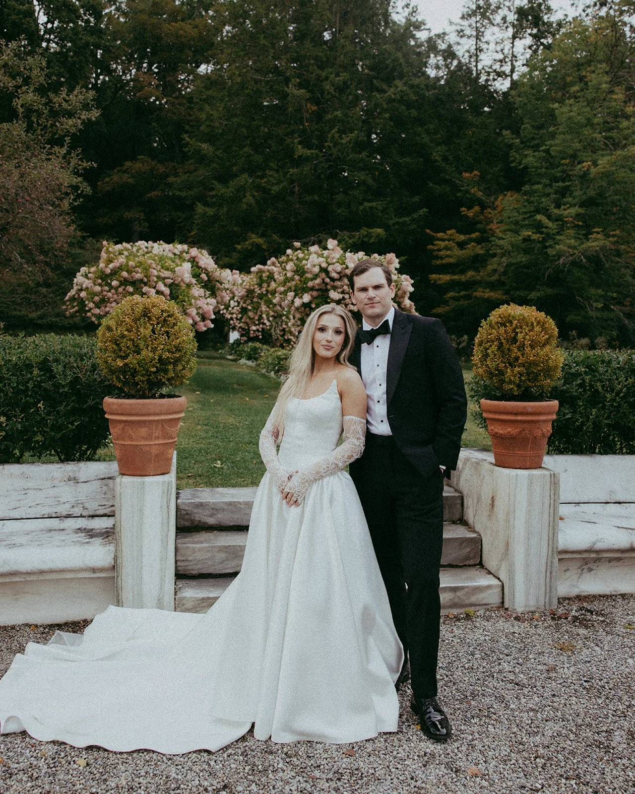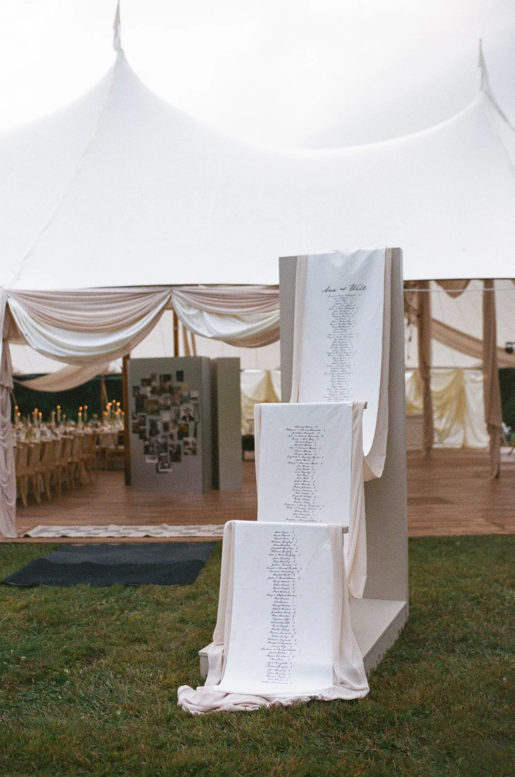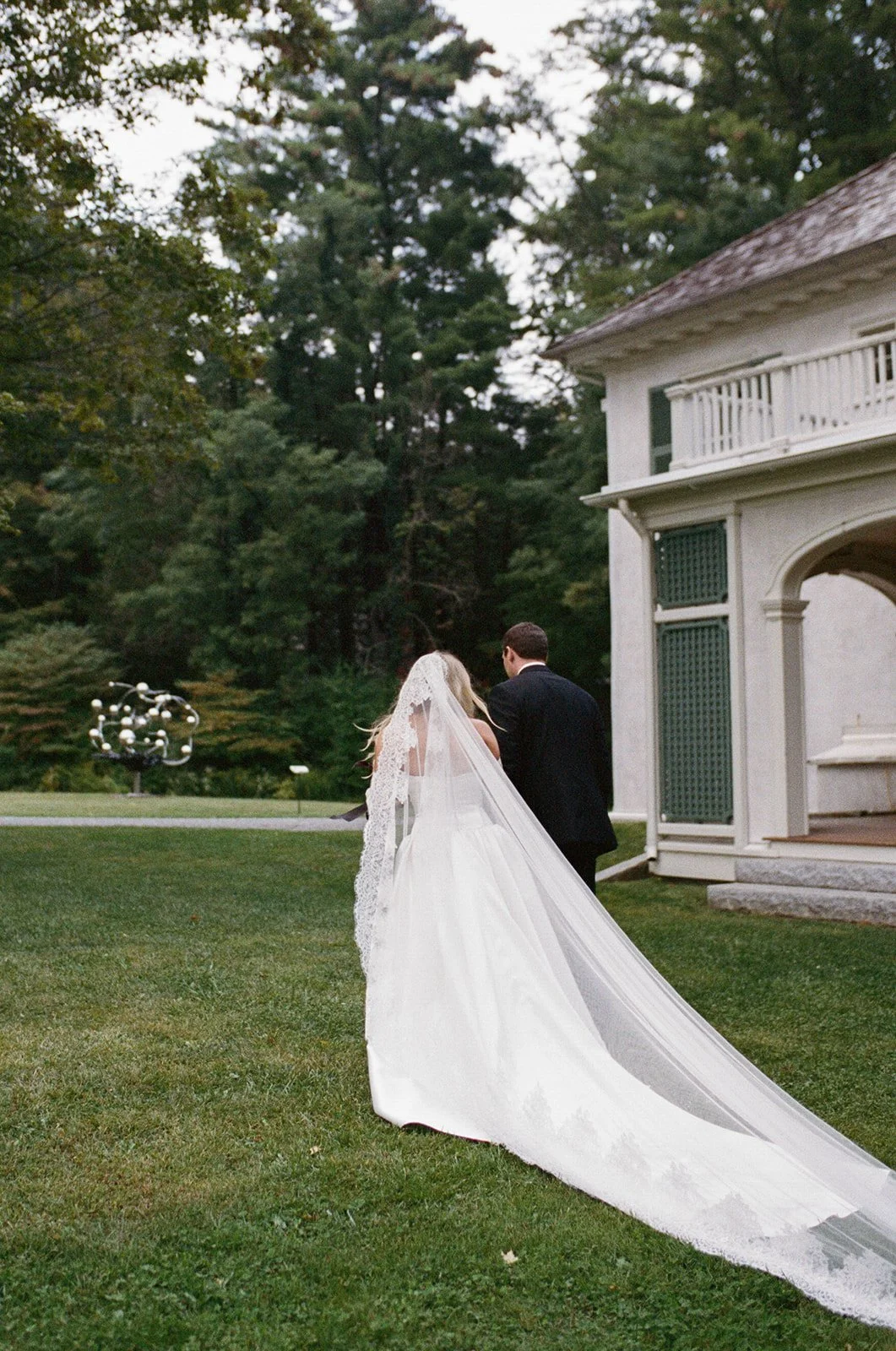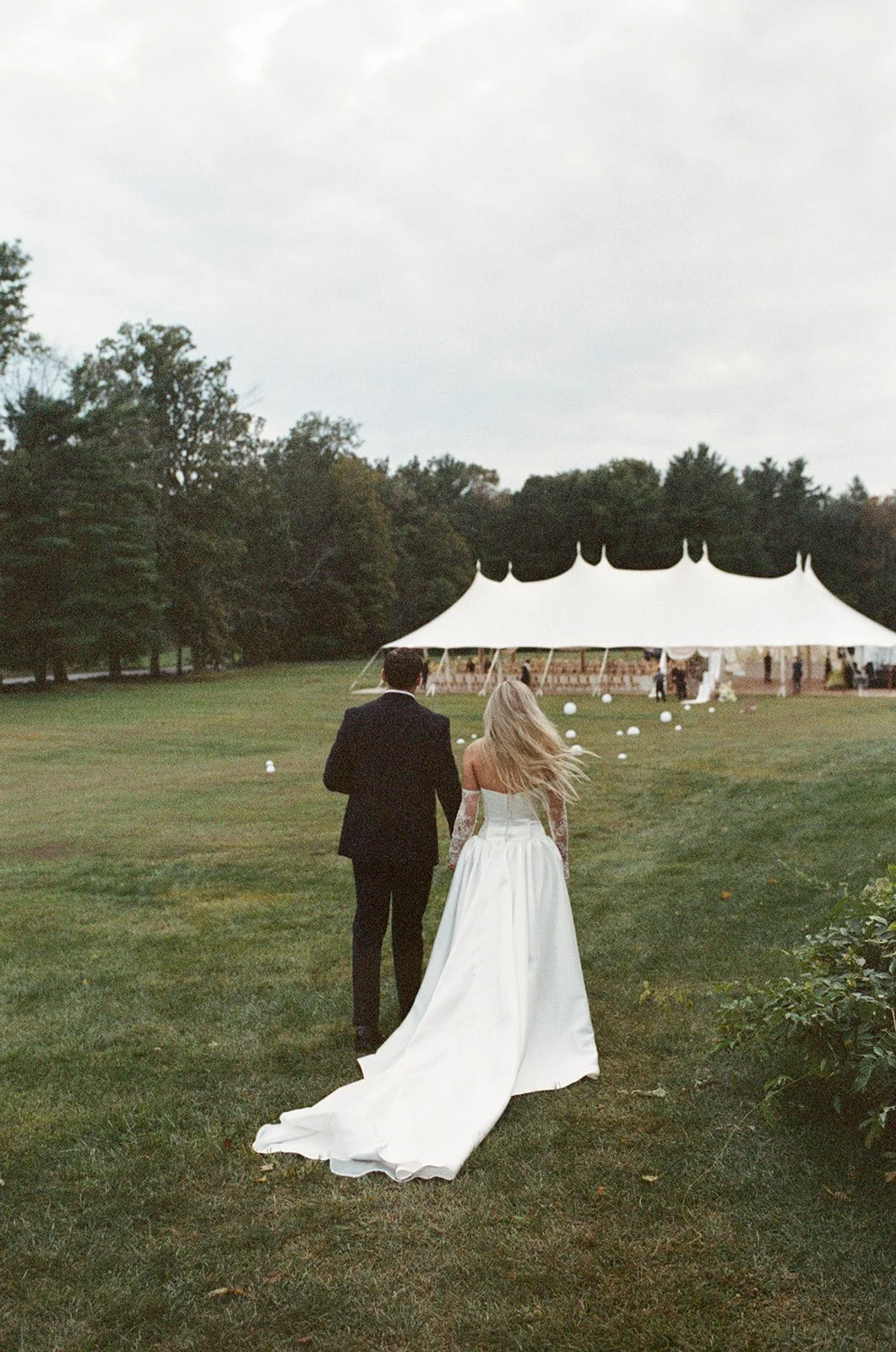 Set in the heart of the Berkshires, Chesterwood offered the perfect balance of timeless artistry + natural serenity. Once the summer estate + studio of sculptor Daniel Chester French, the property carries a quiet reverence for craftsmanship + design, an ideal backdrop for Ana + Will’s art-inspired celebration. The historic architecture, paired with open-air gardens and sweeping views, allowed light + texture to move freely through each vignette. We leaned into this organic rhythm, layering creamy champagne, taupe, + soft white tones with rich camel and sleek black accents. Hints of deep blackberry + ballet pink added depth + charm, creating an atmosphere that felt both refined + alive—a living gallery of love, movement, + meaning.