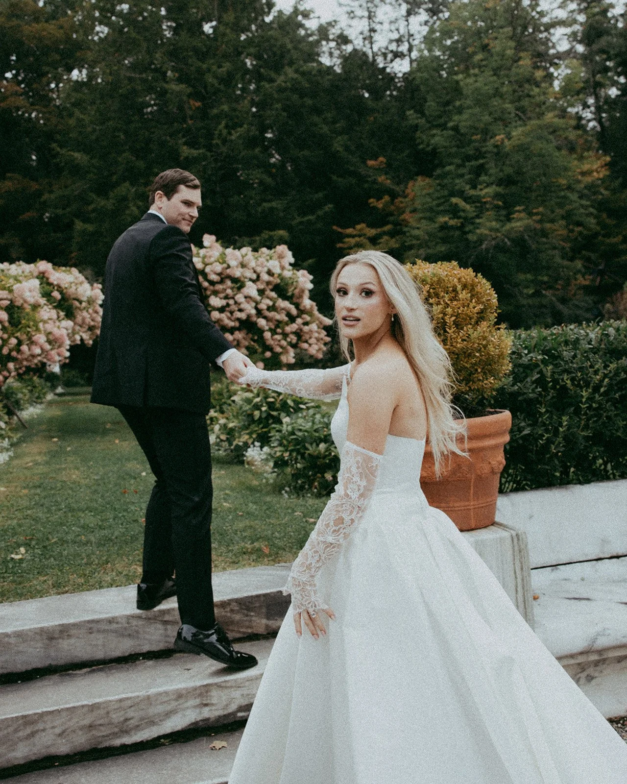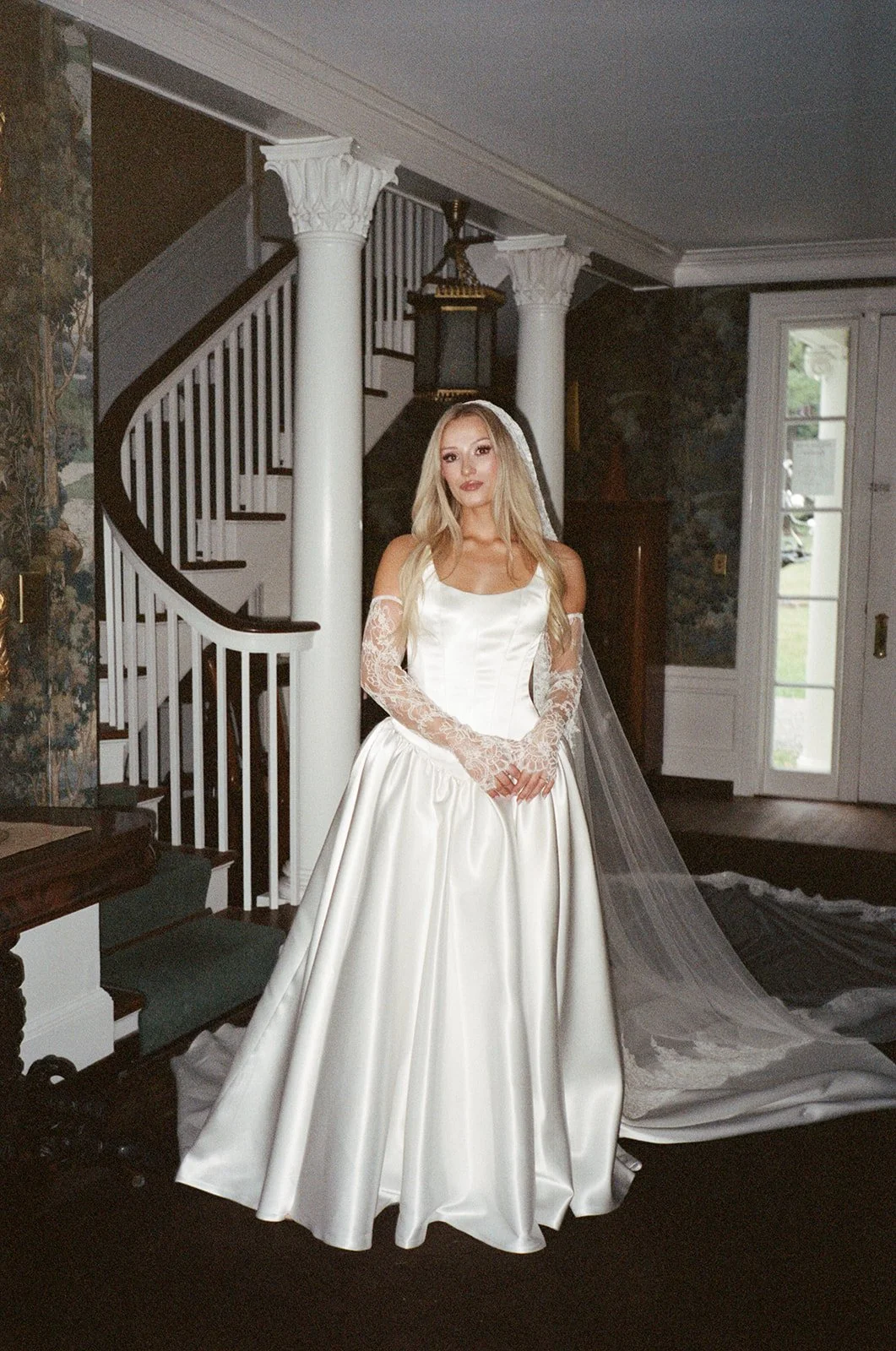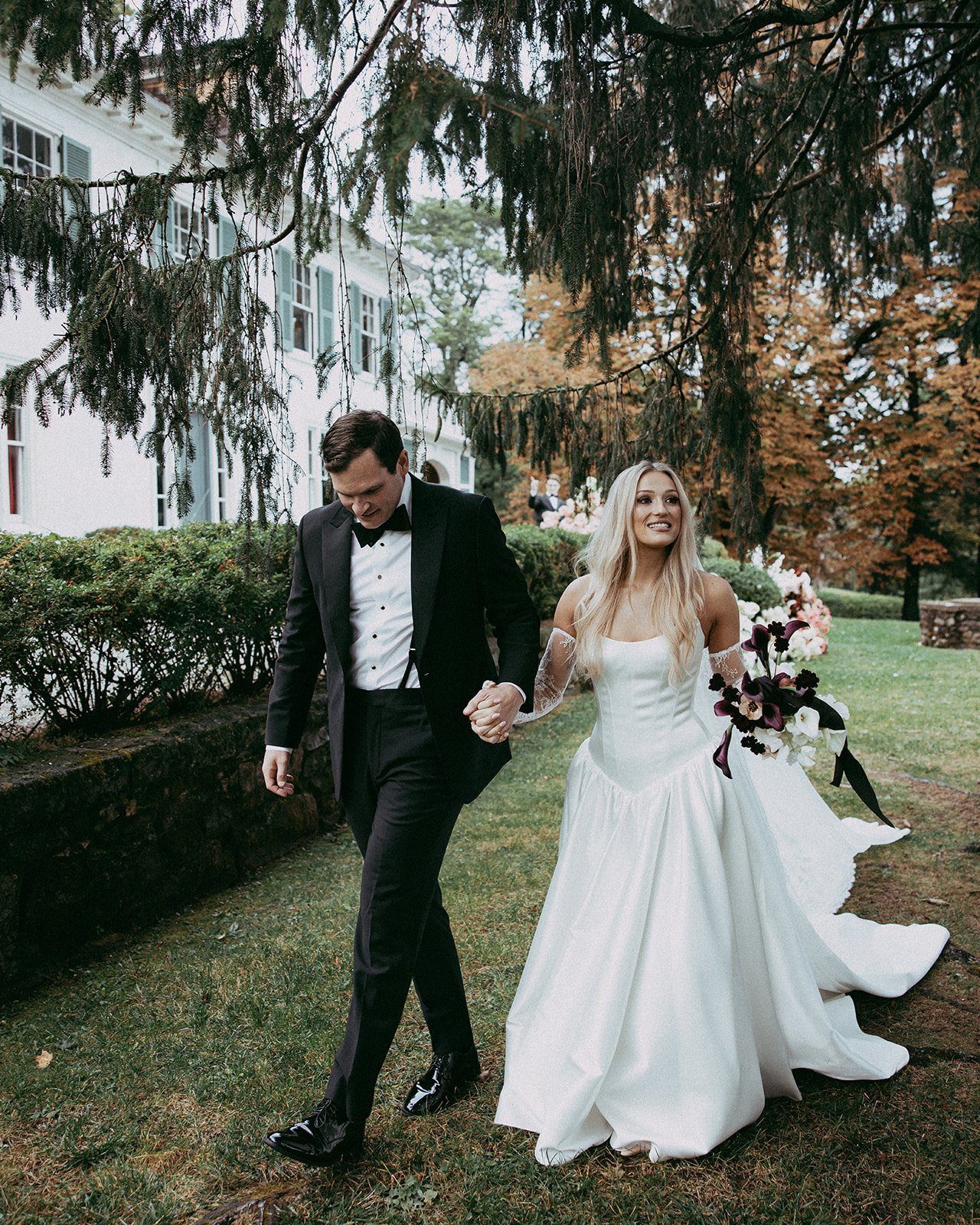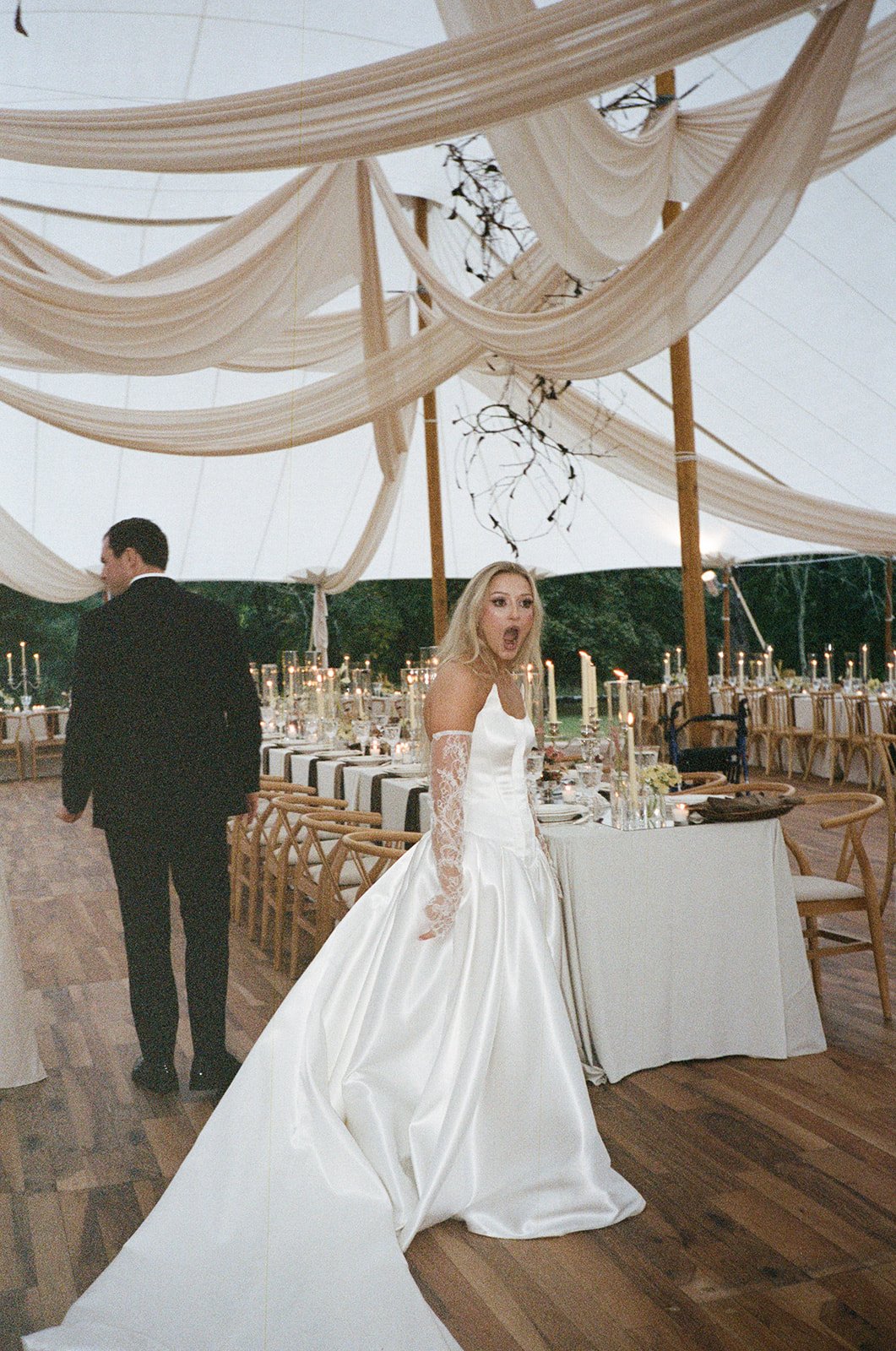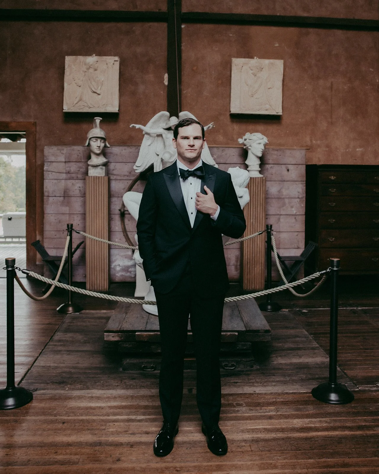 Set in the heart of the Berkshires, Chesterwood offered the perfect balance of timeless artistry + natural serenity. Once the summer estate + studio of sculptor Daniel Chester French, the property carries a quiet reverence for craftsmanship + design, an ideal backdrop for Ana + Will’s art-inspired celebration. The historic architecture, paired with open-air gardens and sweeping views, allowed light + texture to move freely through each vignette. We leaned into this organic rhythm, layering creamy champagne, taupe, + soft white tones with rich camel and sleek black accents. Hints of deep blackberry + ballet pink added depth + charm, creating an atmosphere that felt both refined + alive—a living gallery of love, movement, + meaning.
